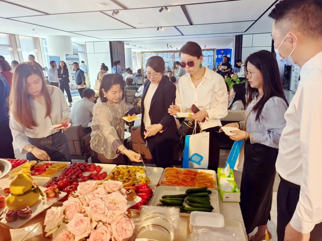 同時(shí),在會(huì)場(chǎng)的茶歇區(qū),工作人員精心準(zhǔn)備了各種糕點(diǎn)和面食,擺盤精致,口味多樣,賞心悅目,還專門擺上了青島力源生態(tài)農(nóng)場(chǎng)出品的太空黃瓜、太空西紅柿、太空辣椒等蔬菜,一顆顆果實(shí)色彩亮麗、爽脆可口、汁水豐富,受到大家的喜愛。