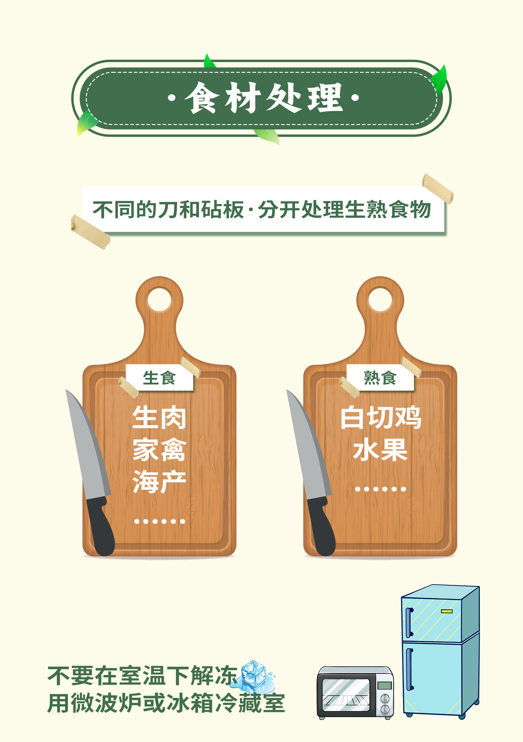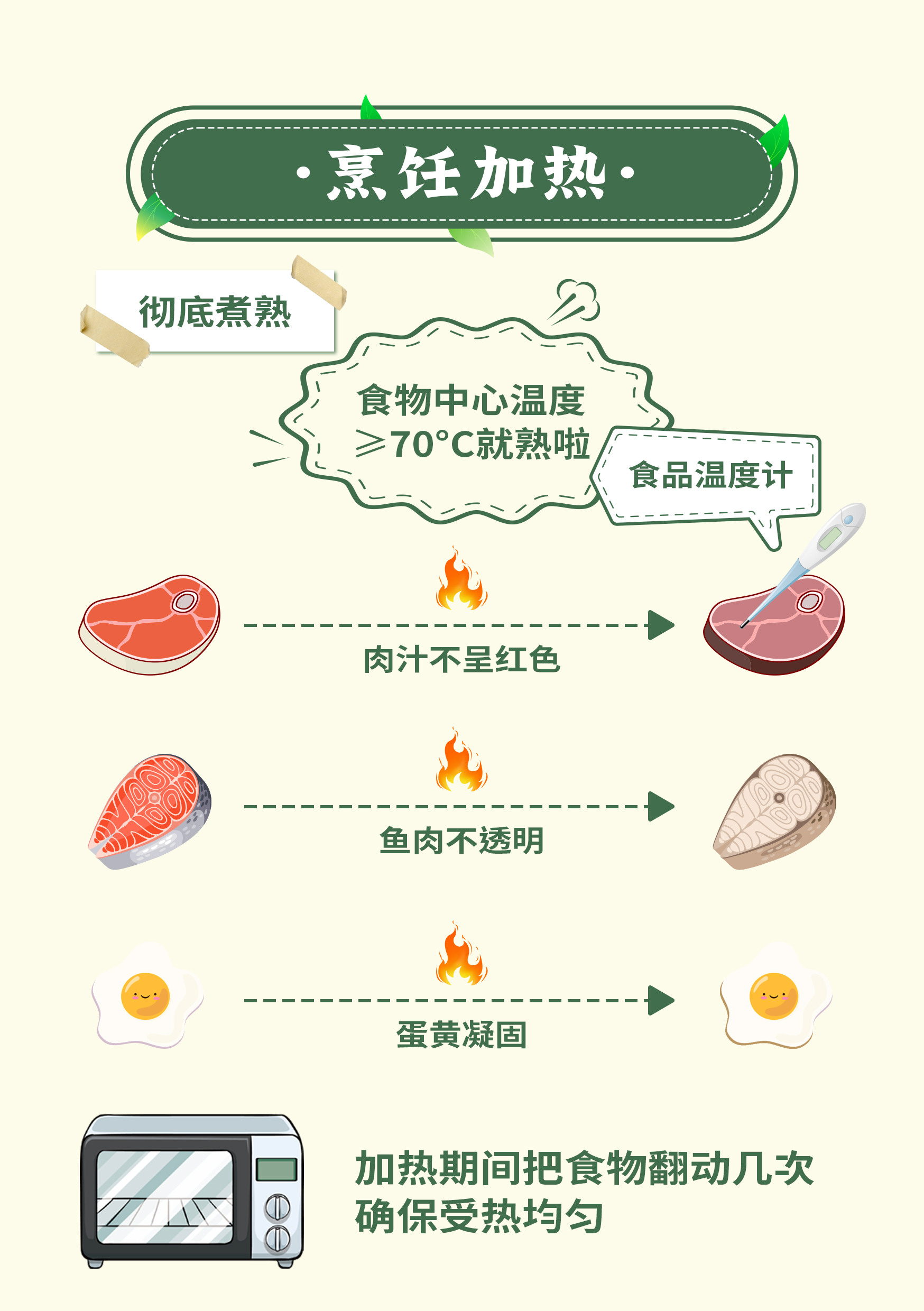 6、食品安全做好深加工處理:食材處理要生熟分開,加熱時(shí)要燒熟煮透,中心溫度要達(dá)到70度以上,盡量少吃生食、涼菜、剩菜。剩菜只保留葷菜,一般在2小時(shí)內(nèi)放入冰箱冷藏,二次加熱中心溫度須達(dá)到80度以上才是比較安全的。