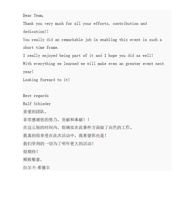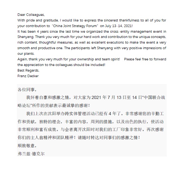 來自華晨寶馬領(lǐng)導(dǎo)的表揚(yáng)信