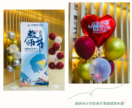 教師節(jié)當(dāng)天,各餐廳現(xiàn)場進(jìn)行了精心布置,盛裝亮相的活動展臺、精致大氣的活動背景板、色彩繽紛的節(jié)日氣球、巧妙設(shè)計的拍照打卡點,處處都凸顯著溫馨的節(jié)日氛圍,彰顯出健力源人的用心和暖心。