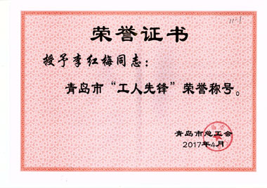 健力源被青島市總工會(huì)授予“工人先鋒號(hào)”