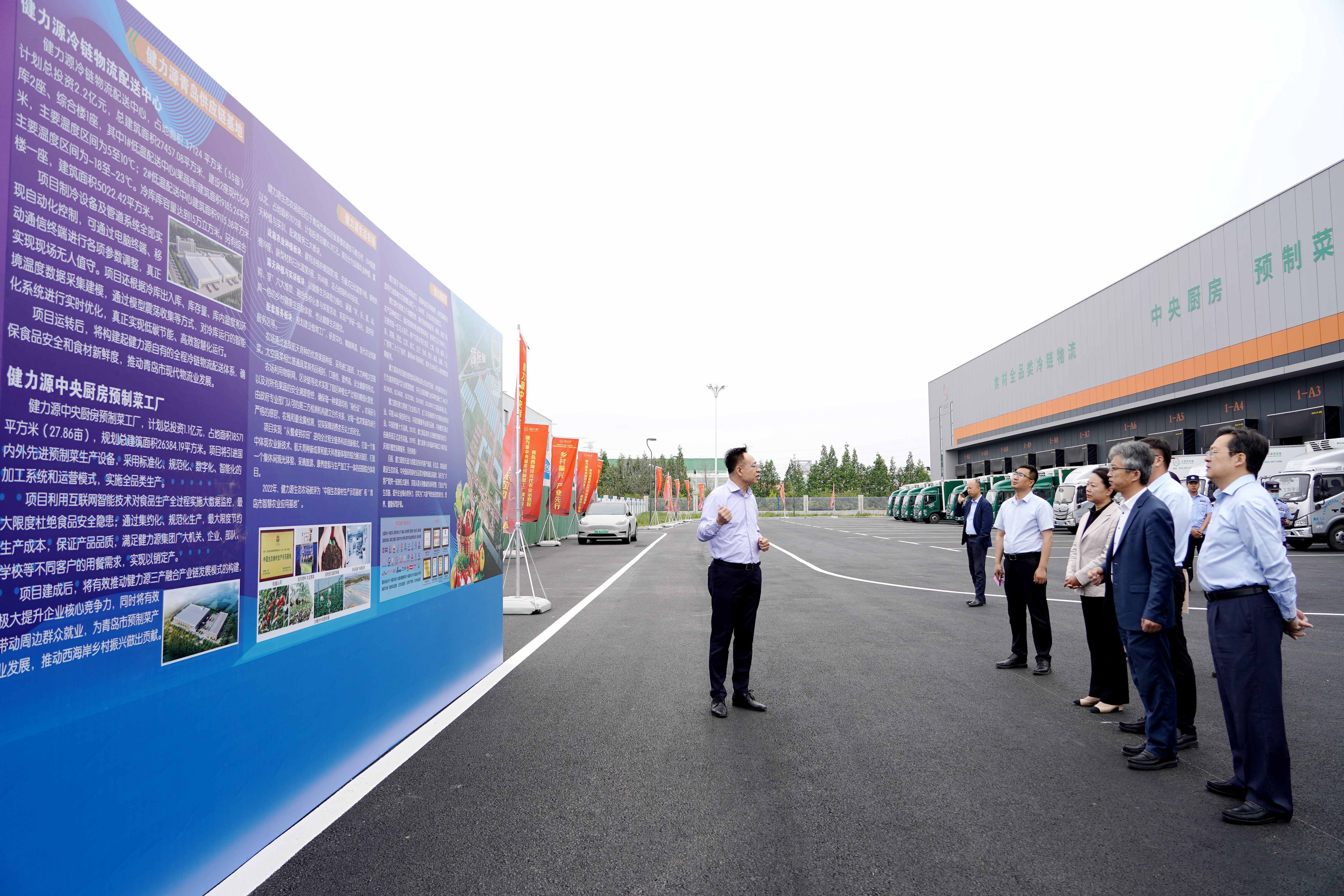 6月1日,初夏的青島微風習習,沒有絲毫暑意。在這一天,位于青島西海岸現(xiàn)代農業(yè)示范區(qū)的健力源中央廚房預制菜工廠項目迎來了開工的好日子。青島西海岸新區(qū)區(qū)委副書記李金國,區(qū)人大常委會黨組成員、副主任李艷,區(qū)政協(xié)副主席許傳輝,青島西海岸現(xiàn)代農業(yè)示范區(qū)黨工委書記朱長江,以及新區(qū)農業(yè)農村局、張家樓街道辦事處、發(fā)改局、工信局、財政局、自然資源局、住建局、商務局、農高集團等單位領導共同蒞臨開工活動現(xiàn)場。青島力源生態(tài)農場和冷鏈物流配送中心總經理徐濤代表集團出席活動。