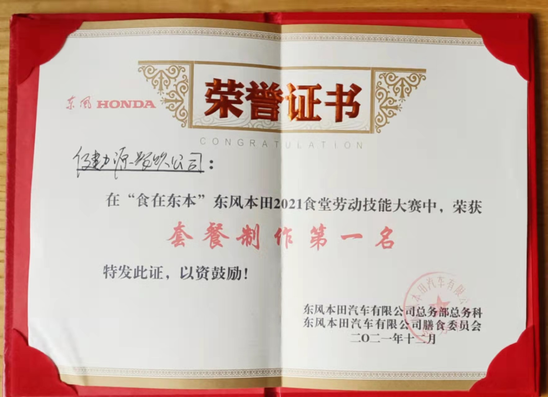 12月12日,武漢東風(fēng)本田汽車有限公司舉辦了以“食在東本”為主題的食堂勞動(dòng)技能大賽,武漢東風(fēng)本田餐廳派出團(tuán)隊(duì)代表我司參加此次技能大賽,與同在東風(fēng)本田服務(wù)的另外三家公司同場(chǎng)角逐。東風(fēng)本田多位領(lǐng)導(dǎo)及膳食委員會(huì)委員出席大賽,并擔(dān)任比賽評(píng)委。