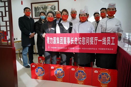 走訪中,薦董聽取了各餐廳春節(jié)期間的工作安排,并親切地問候餐廳員工,送上新春祝福,感謝他們?yōu)楸U峡蛻艉凸景l(fā)展做出的貢獻(xiàn)。薦董強(qiáng)調(diào),冬奧會期間,北京防疫任務(wù)更加艱巨,責(zé)任重大,使命光榮,健力源人要講政治、顧大局,全力以赴做好餐飲服務(wù)保障工作,為首都防疫和冬奧會的成功舉辦貢獻(xiàn)力量。薦董還專門為餐廳同事準(zhǔn)備了節(jié)日禮品,并與大家一起合影留念。