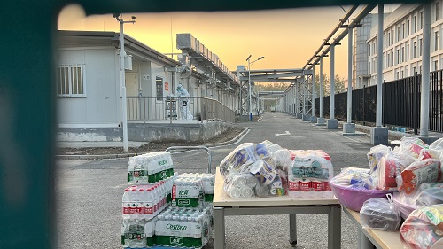 在做好餐飲保障服務(wù)的同時,餐廳還專門為隔離區(qū)患者提供了小程序購買服務(wù)?;颊呙刻炜梢栽谛〕绦蛏献孕邢聠?,購買日常所需的日用品、零食、水果以及礦泉水等,由餐廳進行統(tǒng)一采購,集中送到清潔區(qū)與隔離區(qū)的交界處。據(jù)統(tǒng)計,餐廳平均每天為隔離區(qū)患者提供各類商品多達900至1000件,切實為廣大患者提供了方便,受到廣泛好評。