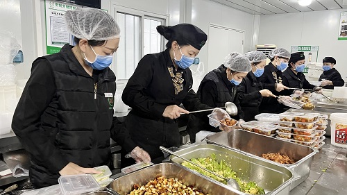 10月,餐廳僅有員工33人,每天卻要保障近5000人次的用餐。餐廳人員從白天到黑夜連軸轉(zhuǎn),隨時要保障醫(yī)護人員的用餐,時刻處于緊張的忙碌中,而且由于沒有專用的電梯,所有餐食全靠人工運輸,工作強度可想而知。鑒于地壇醫(yī)院餐廳的保障強度,11月18日,公司從其他餐廳協(xié)調(diào)抽調(diào)12名員工支援,稍微緩解了現(xiàn)場的工作壓力。但是由于防疫需要,餐廳總有員工被封閉隔離,無法全員上崗。然而,不管人員如何變動,餐廳其他人員總能及時頂上,保證供餐,再次展現(xiàn)出健力源人的團隊精神和大局意識。