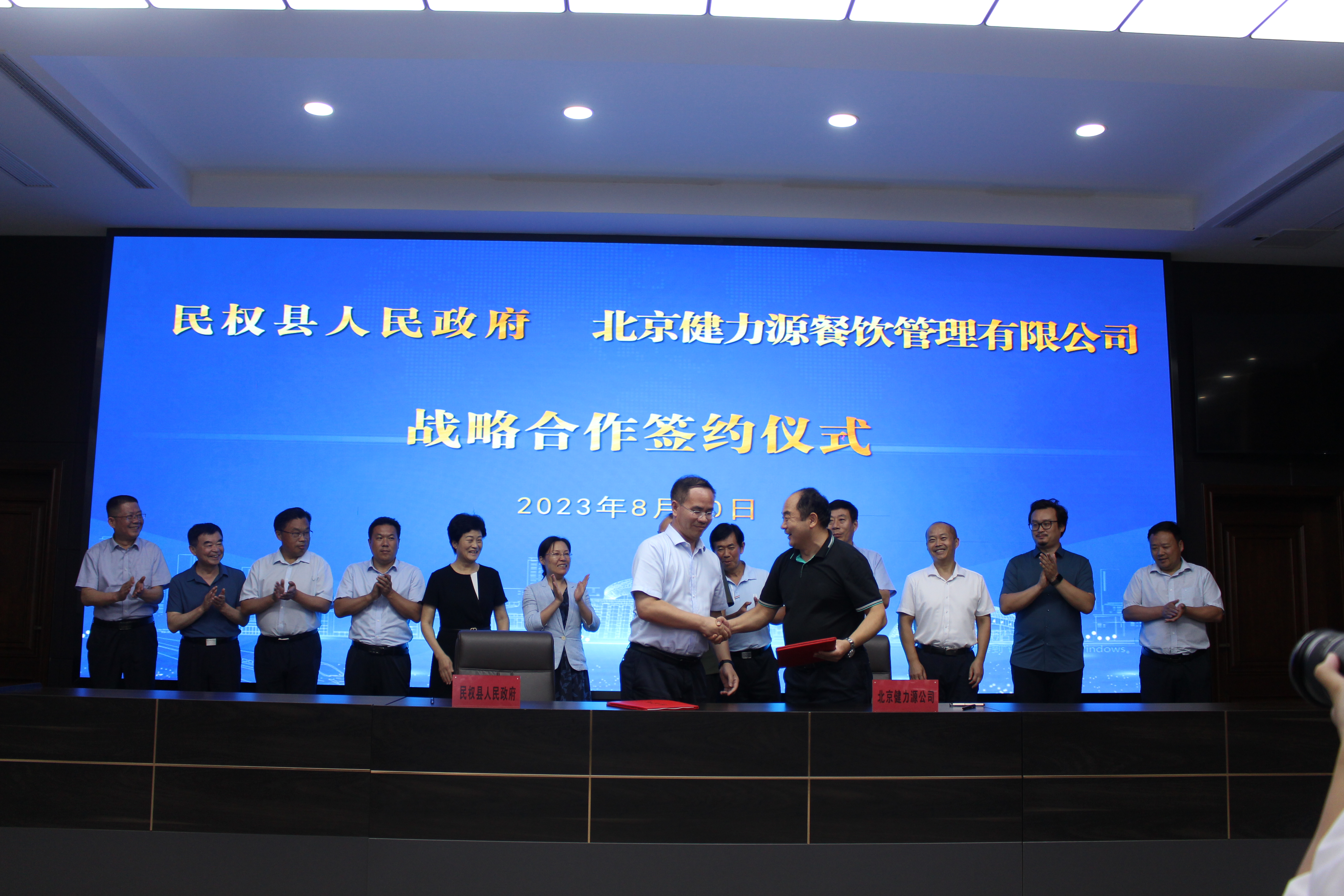 雙方在縣委會(huì)議室進(jìn)行了座談,彼此做了進(jìn)一步溝通交流,表達(dá)了合作意愿。薦董表示,作為中國(guó)團(tuán)餐領(lǐng)軍企業(yè),健力源一直秉承“做良心企業(yè),賣放心食品”的核心價(jià)值觀,努力搭建從源頭到餐桌的全產(chǎn)業(yè)鏈。我們希望與民權(quán)縣合作,為當(dāng)?shù)貙W(xué)校和企事業(yè)單位提供食材全品類供應(yīng)和餐廳管理,特別是解決學(xué)生餐食品安全難題,整合規(guī)范學(xué)生餐市場(chǎng),進(jìn)而倒逼供應(yīng)鏈,促進(jìn)農(nóng)產(chǎn)品深加工,實(shí)現(xiàn)訂單農(nóng)業(yè),構(gòu)建一二三產(chǎn)融合發(fā)展模式,為鄉(xiāng)村振興發(fā)展助力。隨后,雙方一同簽訂戰(zhàn)略合作協(xié)議,開啟了全新的合作篇章。