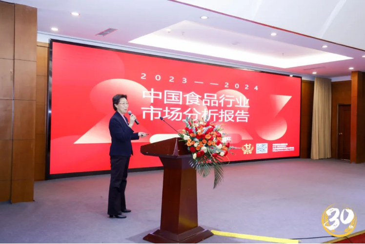 大會(huì)聚焦于當(dāng)前食品行業(yè)的熱點(diǎn)議題,也一同回顧了食品行業(yè)30年輝煌,共商推動(dòng)行業(yè)高質(zhì)量發(fā)展大計(jì)。中國(guó)副食流通協(xié)會(huì)會(huì)長(zhǎng)何繼紅在會(huì)上作《2022-2023中國(guó)食品行業(yè)市場(chǎng)分析》報(bào)告。報(bào)告從2023年中國(guó)食品行業(yè)市場(chǎng)基本現(xiàn)狀、2023中國(guó)食品行業(yè)主要品類細(xì)分市場(chǎng)情況、2023年中國(guó)食品行業(yè)熱點(diǎn)專題、2024年中國(guó)食品流通產(chǎn)業(yè)發(fā)展趨勢(shì)四個(gè)部分分析了市場(chǎng),研究了趨勢(shì),提出了方向。