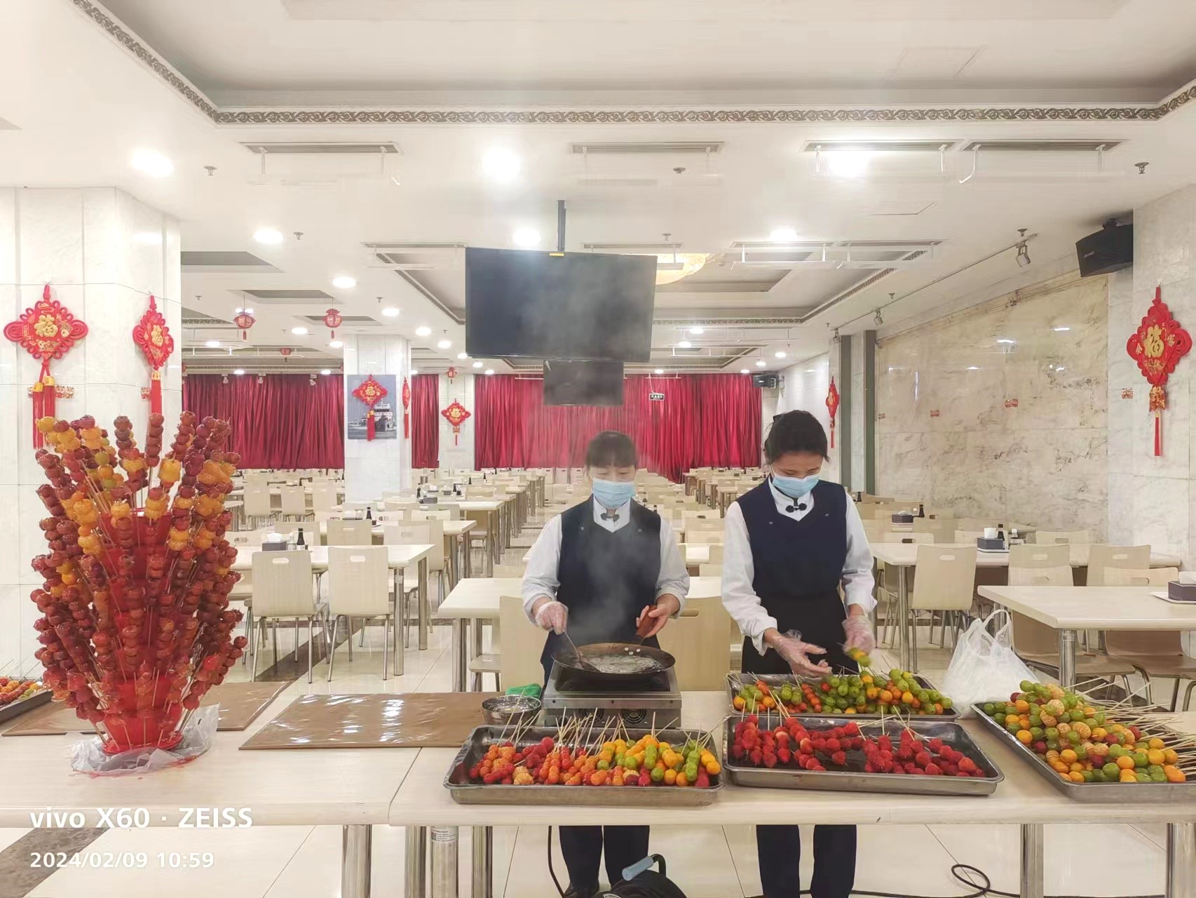 中國海警局餐廳員工正在為客戶制作糖葫蘆