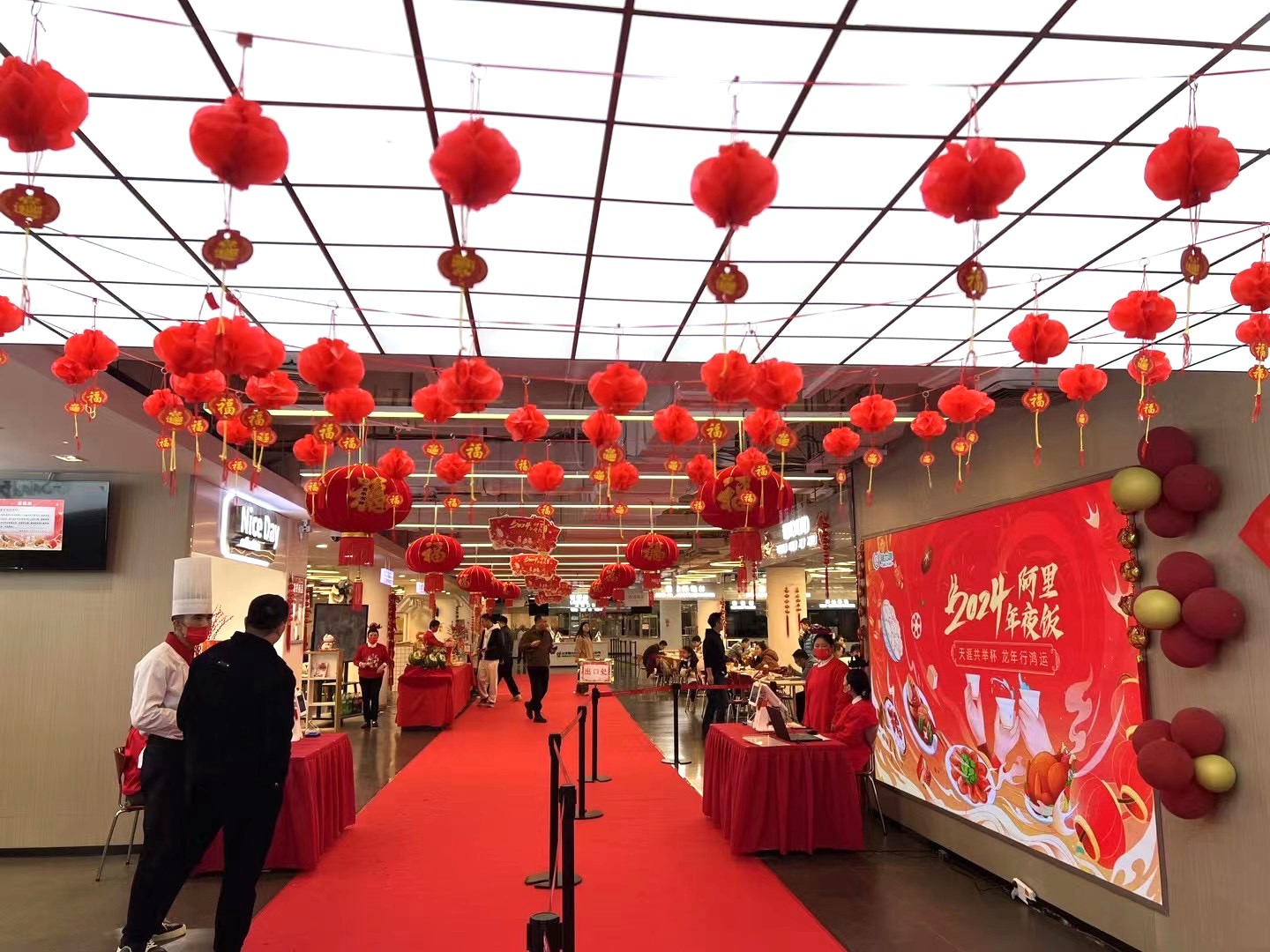 裝扮喜慶的餐廳現(xiàn)場