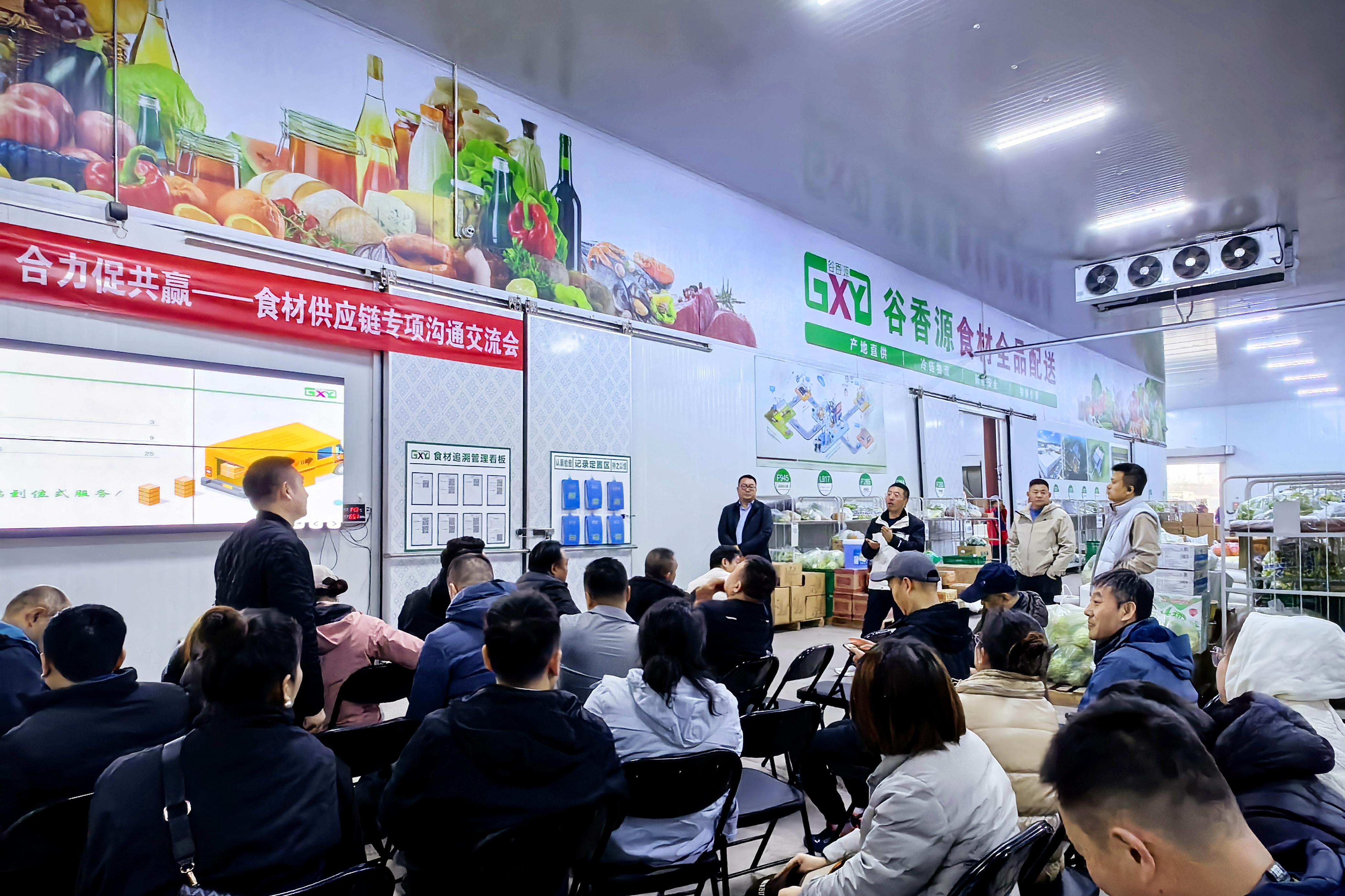 帶著意猶未盡的黨史學(xué)習(xí)激情,大家一同走進(jìn)谷香源房產(chǎn)全品配送中心。谷香源總經(jīng)理柯建卓帶領(lǐng)大家參觀了配送中心的常溫庫、保鮮庫、低溫庫、分揀區(qū)等區(qū)域,北京大區(qū)采購部經(jīng)理?xiàng)钇G朝同步介紹了各食材品牌的采購渠道及產(chǎn)品優(yōu)勢。現(xiàn)場還進(jìn)行了座談交流,大家一起了解了谷香源雙中心保供、全程冷鏈車保障、源頭采購、價(jià)格體系管理、全程信息化管理、食安管控、自有供應(yīng)鏈基地七大優(yōu)勢。