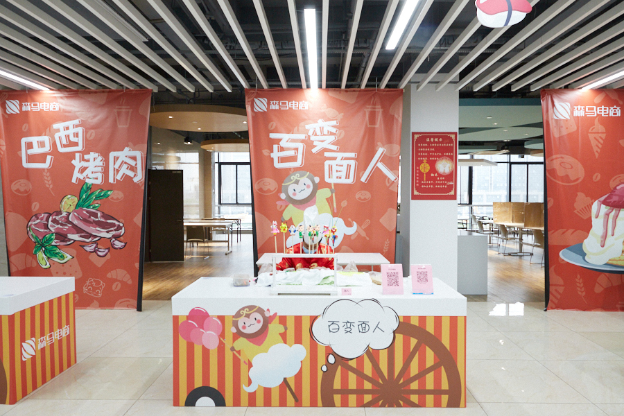 為了能讓此次餐廳周年慶別開生面,贏得森馬小伙伴們的認可,餐廳全體人員進行了精心的籌備?;顒赢斕?,餐廳門口專門放置了喜慶的拱門和俏皮可愛的氣球柱,并現場懸掛橫幅、放置易拉寶,營造出溫馨愉悅的節(jié)日氣氛。