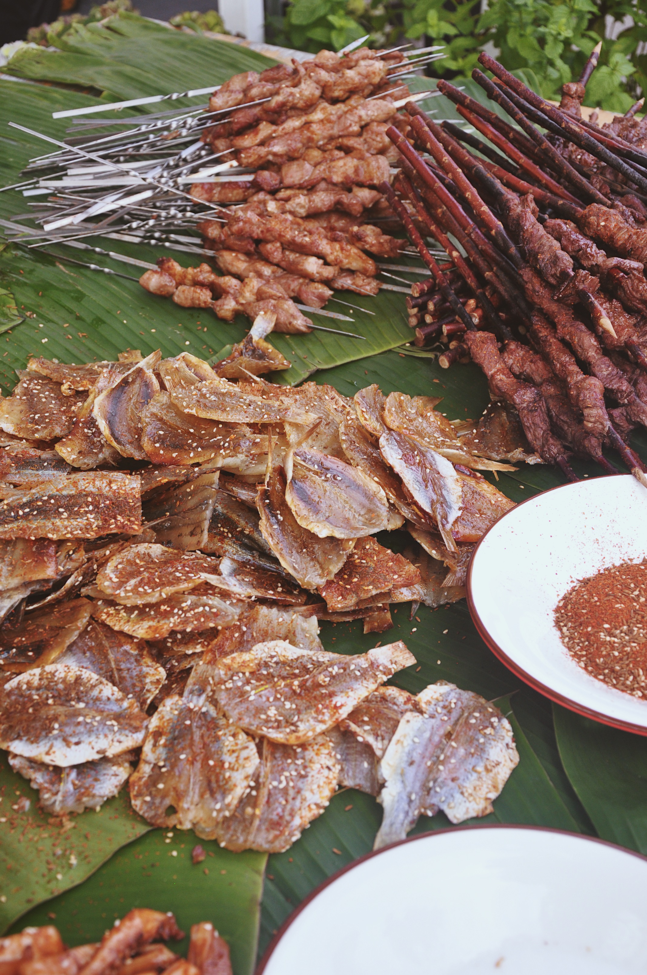 烤鳳梨、烤蔬菜、紅柳烤羊肉