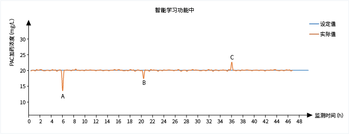 智能學(xué)習(xí)功能可根據(jù)歷史加藥數(shù)據(jù)自動(dòng)學(xué)習(xí),糾正當(dāng)下的加藥偏差,達(dá)到加藥精準(zhǔn)穩(wěn)定。即使出現(xiàn)人為誤操作,加藥實(shí)際值發(fā)生偏差,通過智能學(xué)習(xí)程序系統(tǒng)會(huì)自動(dòng)修正實(shí)際加藥量,恢復(fù)到設(shè)定的加藥量。
